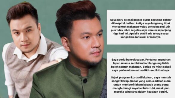 Saya baru selesai proses kurus bersama doktor di hospital. Ini hari ketiga saya langsung tidak menyentuh makanan walau sekeping roti,” ujarnya.