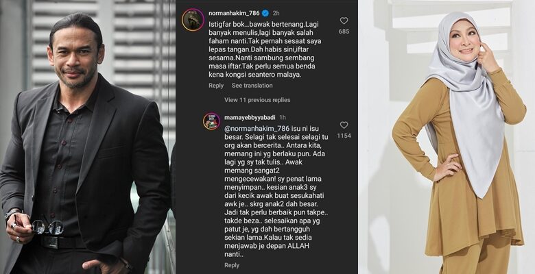 Luahan Abby atau nama sebenarnya Arbaiyah Abdul Manan dalam Instagram miliknya telah mendapat perhatian Norman apabila meminta bekas isterinya bertenang dan berhenti daripada menulis apa-apa tentang Marissa.