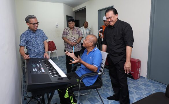 KEMENTERIAN Komunikasi akan terus komited membantu penggiat seni veteran termasuk pemuzik, Ross Ariffin yang menerima sumbangan berupa sebuah keyboard di kediamannya di Projek Perumahan Rakyat Kampung Muhibbah di sini, semalam.