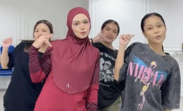 Dalam video TikTok yang dimuat naik Siti, dia dilihat turut menari bersama tiga lagi penari lain dan perkongsian tersebut meraih ribuan pujian daripada netizen. – HIBGLAM