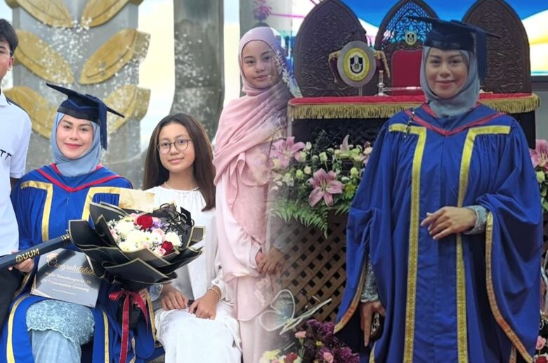 USIA bukan penghalang, pelakon Rebecca Nur Al-Islam berjaya menamatkan pengajian Ijazah Sarjana Muda Pengurusan Perniagaan (Kepujian) di Universiti Utara Malaysia (UUM), Sintok.