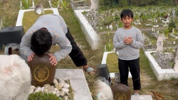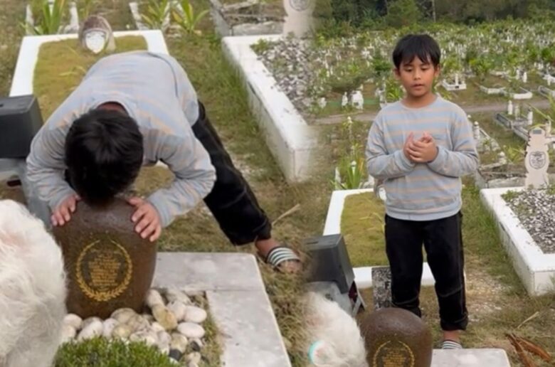 Dalam satu perkongsian, ramai naik sebak apabila ketika Matin mencium batu nisan dan bersungguh-sungguh membersihkan batu di pusara ibunya.