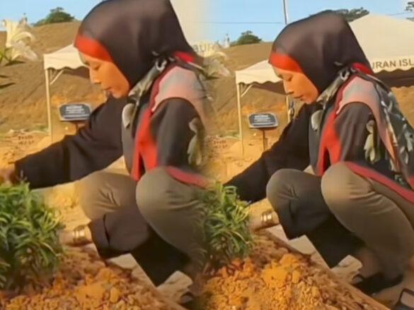Menerusi perkongsian videopo itu, Amyza dilihat membersihkan kubur arwah selain menambahkan tanah serta batu ‘rumah baru’ puteranya.
