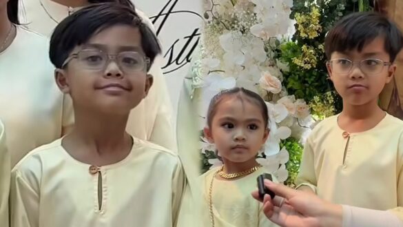 KEGEMBIRAAN jelas terpancar pada wajah dua anak kecil, Ayden Adrean dan Ara Adreanna menjelang momen bahagia majlis pertunangan ibunya, Bella Astillah dengan ahli politik Syed Saddiq.