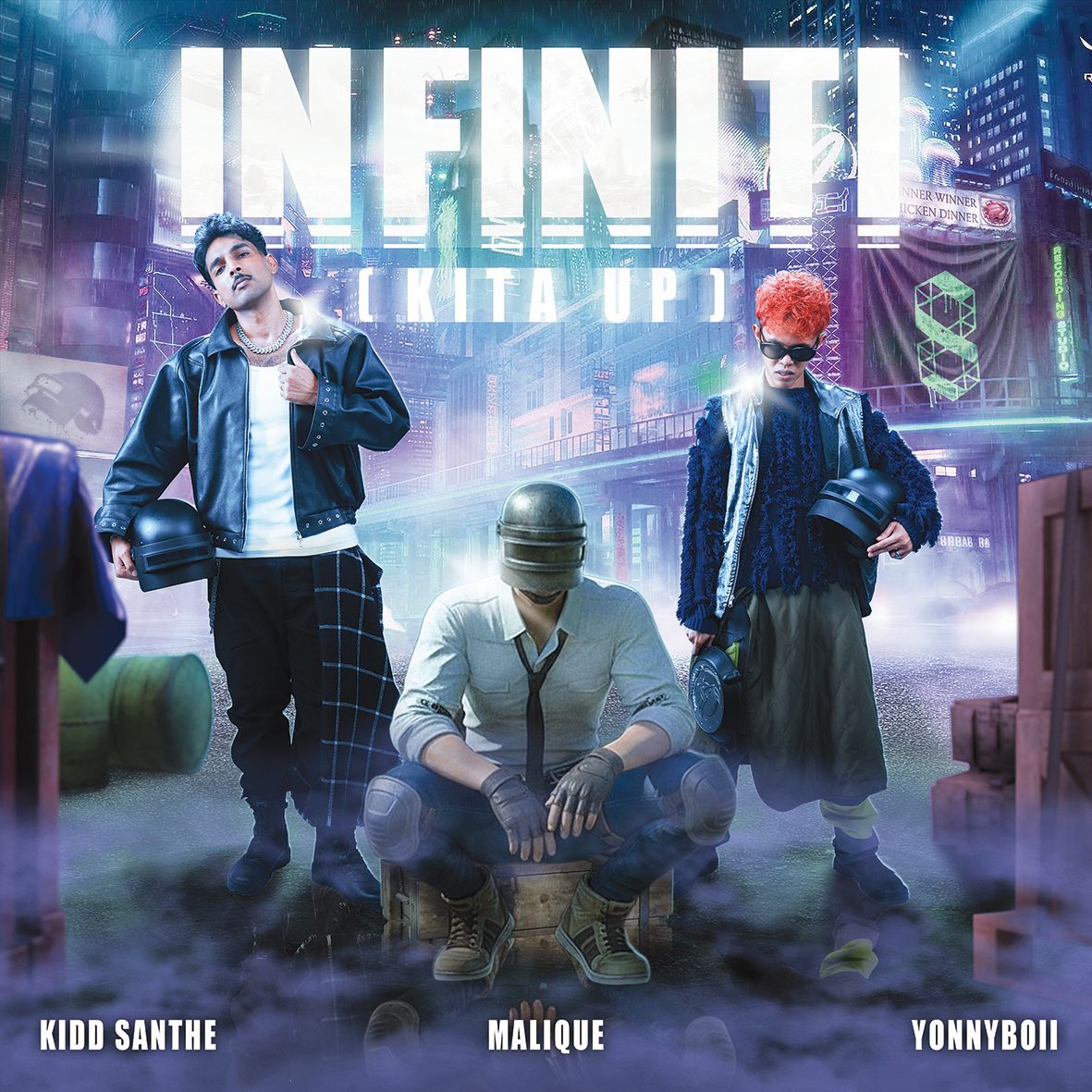 YONNYBOII: Infiniti ini Kid Santhe yang tulis dan gubah apa semua. Saya direkrut oleh PUBG Malaysia menyanyikan korus lagu ini. Saya cuba tangkap intipati lagu ini iaitu semangat kemenangan. Cuba bangkitkan semangat pemain-pemain Malaysia kita untuk permainan video ini.