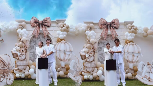Suaminya juga pemain bola sepak, Akhyar Rashid melompat kegembiraan pada pengumuman di majlis ‘gender reveal’ yang berlangsung semalam.